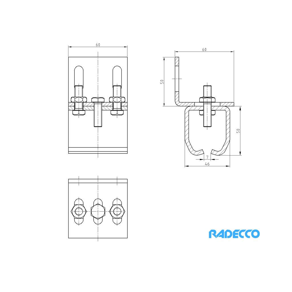Držák (boční) kolejnice v rozměru 60x100 mm. Tloušťka 4 mm.