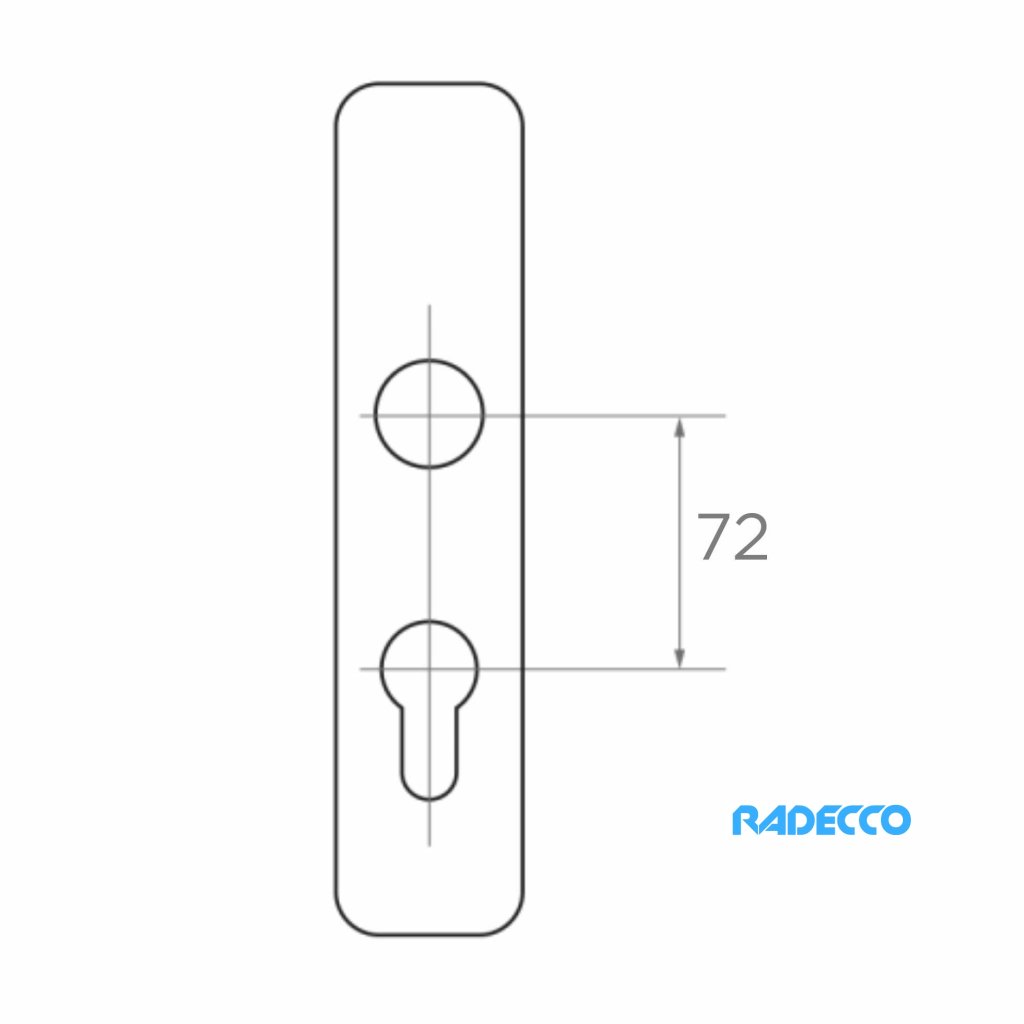 Rozteč mezi otvorem a rukojetí je 72 mm.